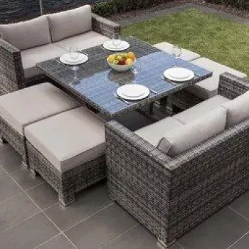 Modern American Style Wicker Rattan Outdoor Dining Set with Glass Table